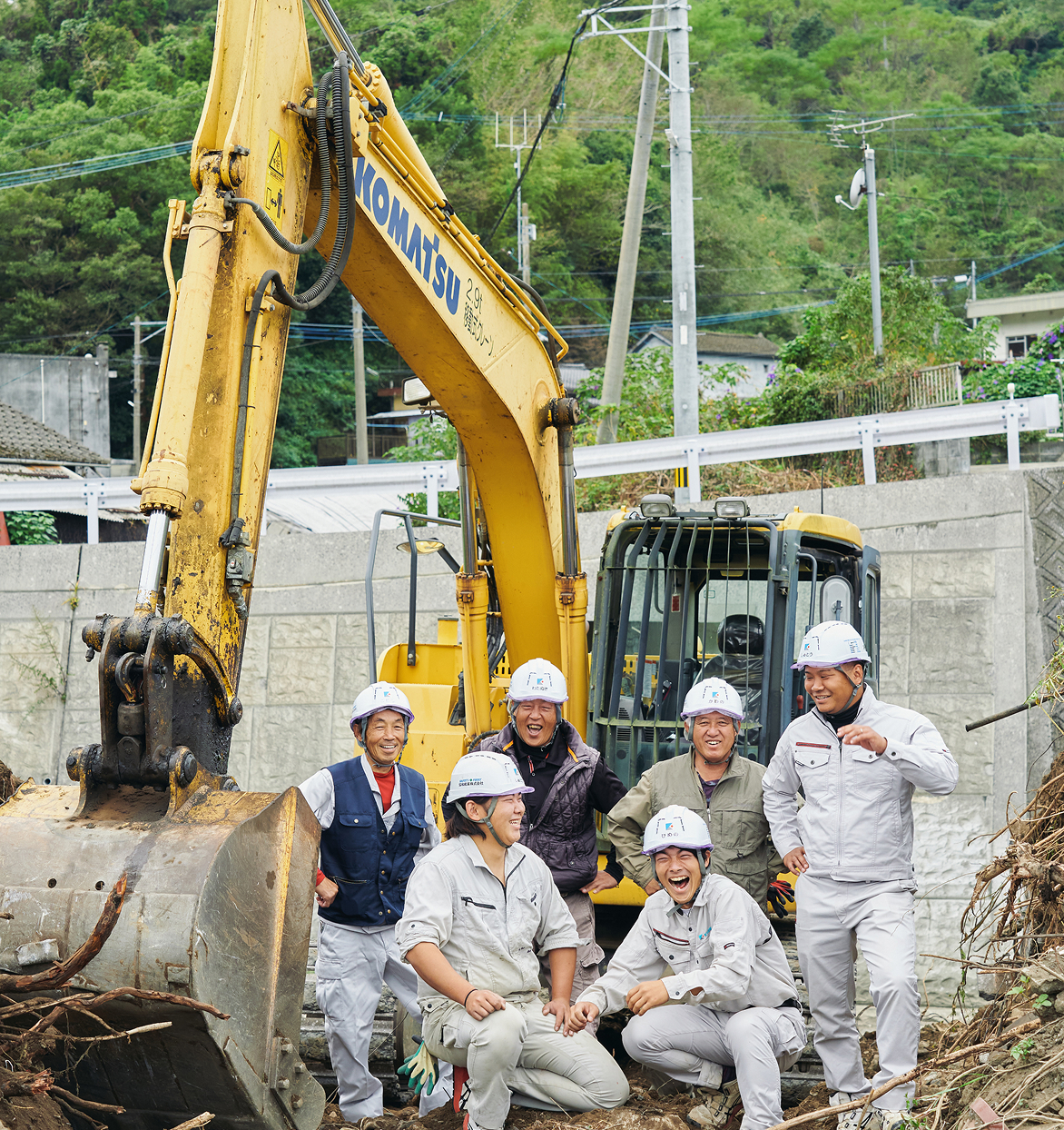 2017年に津久見市で発生した豪雨災害。姫野さんは中学生のときに土砂の掻き出しなどのボランティアを行いました。復旧工事に携わる土木技術者の姿を目にし、高校で土木が社会に果たす役割を学び、地元・津久見市の協和産業に入社。